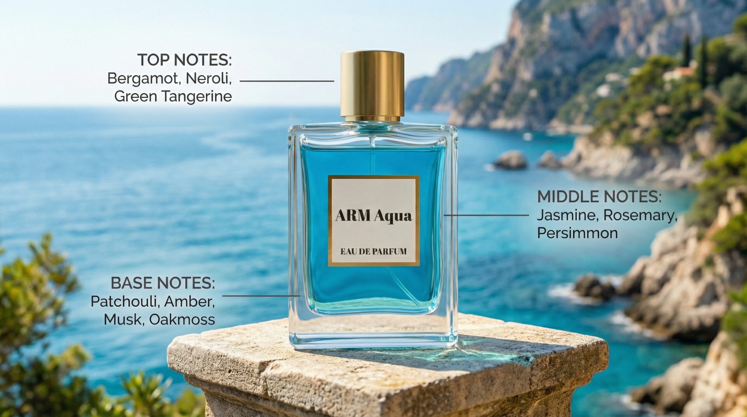 Clean Mediterranean freshness with aromatic depth and a smooth musky finish.